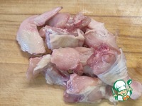 Курицу нарезать на небольшие кусочки. Перекладываем в глубокую кастрюлю, заливаем водой и ставим на средний огонь. По мере образования пенки, снимаем шумовкой. Варим 20 минут. |