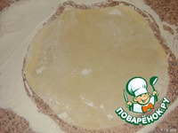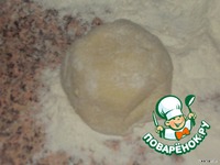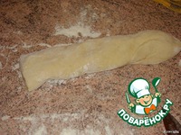 Смешать разрыхлитель с мукой и замесить нежное, не очень жесткое тесто, скатать колбаску. |