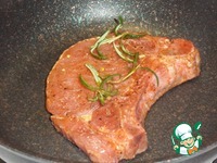 В глубокую миску выкладываем кусок мяса. Поверх мяса выкладываем часть подготовленного маринада и щепотку розмарина. |