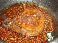 Убавляем огонь. Выкладываем в сковороду оставшийся маринад. Накрываем сковороду крышкой. Готовим 15 минут. |