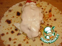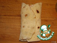 Завернуть все конвертиком, а край смазать соусом, чтобы не разворачивался. |