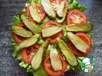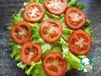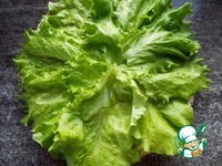 Верхушку булки щедро промазать майонезно-горчичным соусом. Разложить листья салата. |