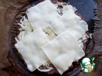 В это время приготовилась наша мясная составляющая. Разложить на неё сыр и поставить еще в духовку, буквально на минутку, чтобы сыр подтаял, можно под гриль. |