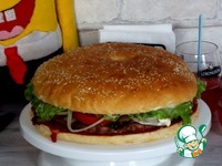 Описание: Ещё один из популярных мультсериалов моего детства - это "Губка Боб квадратные штаны". Признаюсь честно, я не фанатела от этого мультфильма, но вот мой супруг смотрел, а потом смотрел и с моим младшим братом, а позже и с сыновьями. В данное время увлечён этим своеобразным героем младший ребёнок, ему 8 лет. Искоса, мой взгляд падает на происходящее на экране)). И я, как увлеченный кулинарией человек, не могла не заметить, чем занимается Спанч Боб. А именно, множество серий посвящены приготовлению и рекламе его фирменных "Крабсбургеров", секретная формула приготовления, которых не раскрывалась никогда. Где-то фигурирует примерный состав этого бутерброда. По нему я и решила приготовить этот мега большой, сочный и обалденно вкусный бургер. А зачем такой большой?? Да, чтобы хватило на большую дружную компанию!!!)))