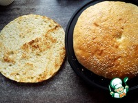 Желательно подсушить обе части булки (на разрезе) на гриле или сковороде (если есть такой размер). Я воспользовалась блинницей. |