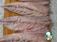 Потрошим рыбу. Отделяем голову. Счищаем черную пленку с брюшной полости. Далее делаем продольный надрез вдоль всего позвоночника и с помощью ножа отделяем филе. Удаляем хребет. |