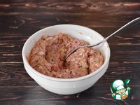 Добавьте к мясному фаршу нарезанный лук, натёртый огурец, кетчуп, посолите и поперчите по вкусу |