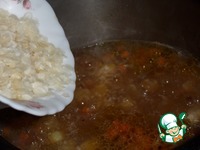 Затем добавляем в кастрюлю рисовые хлопья. Перемешиваем. |