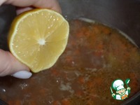 Разливаем суп по тарелкам. Добавляем по вкусу молотый перец и ломтик лимона. |