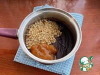 Горячую массу снимите с огня и всыпьте измельченные грецкие орехи и добавьте 3 ст. л. с верхом, повидло из морошки и костяники. Перемешайте и оставьте на столе до полного остывания начинки. |