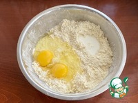 Затем добавьте яйца и холодное молоко. Замесите тесто. |