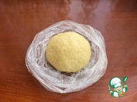 Тесто получается мягким и комфортным в работе... Оно не липнет к рукам. Тесто заверните в пакет и оставьте на столе, минут на 30. |
