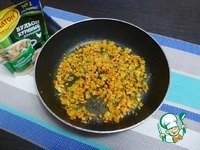 Мелко нарезать лук, морковь и сладкий перец. Добавить куркуму. Обжарить до мягкости. |