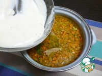 На сухой сковороде обжарить муку до лёгкой желтизны, положить сметану, размешать, чтобы не было комочков, и слегка прогреть. Сметану с мукой смешивают, чтобы сметана не сворачивалась в супе. |