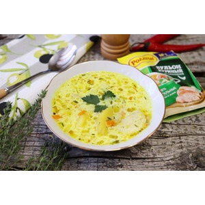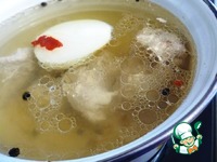 Когда картофель сварится, выложить в кастрюлю сметану. Довести до кипения и варить пару минут. Мясо по правилам подаётся отдельно от супа. Но я сняла мякоть с костей и положила в суп. |