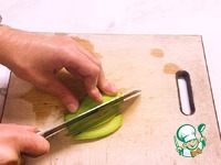 Потом помидоры, огурцы и авокадо нарезаем тонкими слайсами. |