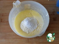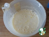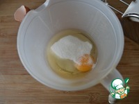 Тем временем готовим тесто. В ёмкость для взбивания разбиваем яйца, кладём соль, сахар, ванилин, взбиваем миксером до растворения сахара. |