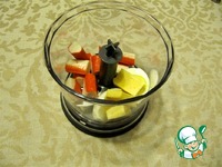 Крабовые палочки (примерно 3-4 штуки), яйцо, сыр измельчить в блендере. |