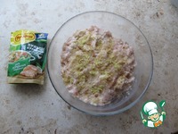 Куриное филе нарезать кусочком и измельчить вместе с луком до консистенции гречневой каши. |