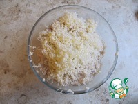 Лук мелко покрошить и прогреть до прозрачности на сливочном или растительном масле, охладить. |