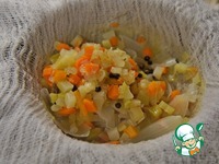 Лук измельчить, морковку нарезать частью кружочками, частью - соломкой и обжарить. Положить зажарку в супчик. Картофель очистить и нарезать. Опустить в кипящий суп. |
