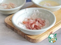 Мякоть свинины помыть, хорошо обсушить бумажным полотенцем и нарезать на длинные кусочки, длинной около 6-7 сантиметров и толщиной около 5-6 миллиметров, сложить в чашку. |