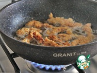 В сковороде разогреть оставшееся от обжарки картофеля растительное масло на среднем огне, на котором обжарить порциями кусочки свинины в кляре до золотистого цвета, временами переворачивая их. |