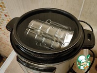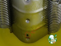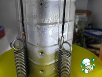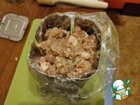 Выкладываем туда нашу мясную смесь, и завязываем пакет, излишки пакета обрезаем. Закрываем у ветчинницы верхнюю крышку и надеваем пружины, чтобы мясо внутри спрессовалось. |
