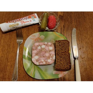 Наша ветчина готова, можно нарезать и подавать на стол. В качестве приправ к ветчине можно использовать горчицу, аджику, хрен или маринованные (солёные) овощи. ПРИЯТНОГО АППЕТИТА! |