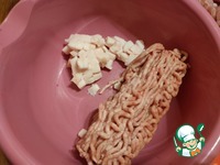 Отправляем в миску с салом и фаршем. |