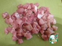 Мякоть свинины режем кусочками по 1-2 см. |