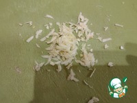 Чеснок я натираю на тёрке, можно мелко порезать ножом. Отправляем его тоже в миску с мясом. |