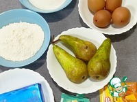 Продолжаем готовить тесто: добавляем муку и разрыхлитель — перемешиваем лопаткой, либо большой ложкой до однородного состояния. Груши мелко режем. |