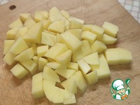 В кастрюлю налить воду. Поставить на огонь. Пока вода закипает чистим картофель, моем. Режем на небольшие кусочки. Запускаем в кастрюлю, доводим до кипения и варим 3-5 минут. |
