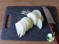 Лук чистим, режем стрелками или кубиками, в любом случае будет измельчаться. |