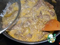 Добавляем сливки, перемешиваем и тушим 3 минуты на среднем огне до загустения сливок. Добавляем сливочное масло. |