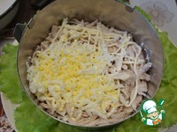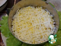 Затем натереть оставшиеся яйца и снова сеточка из майонеза. |