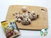 Шампиньоны протрите влажной салфеткой и нарежьте на кусочки. |