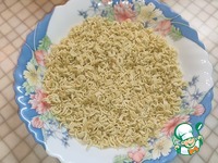 Лапшу быстрого приготовления измельчаем. Пересыпаем в тарелку. |