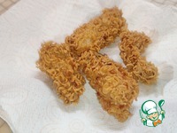 Описание: Такие хрустящие куриные кусочки станут вкусной закуской под пиво или просто так, похрустеть перед телевизором в выходной день. Дети тоже не откажутся попробовать, ведь они станут отличной заменой наггетсов.