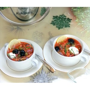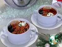 Предлагаю приготовить вкусное и сытное блюдо - Солянку мясную. Представляете, как будет классно, после прогулки к новогодней ёлке или по зимнему лесу, придя домой, съесть порцию горячей, ароматной, насыщенной соляночки, да с лимончиком, да со сметанкой!