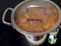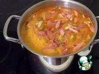 Когда все продукты подготовлены остаётся лишь отправлять их вовремя в кастрюлю.