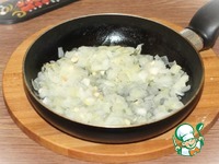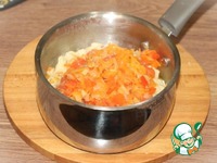 10. Приготовим зажарку. На разогретом растительном и сливочном масле обжарить порезанные мелкими кубиками лук и чеснок. Жарить до золотистого цвета, минуты 3. |