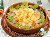 16. Кладем лапшу с зажаркой в теплое сервировочное блюдо и раскладываем по кругу пряную, ароматную, пропитанную соусом, печень. Украшаем блюдо зеленью. |