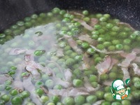 Влить часть бульона в зеленый горошек, довести до кипения и проварить минуту. |