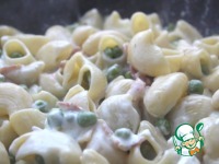Когда паста практически готова, добавить сливочный сыр, перемешать и подавать. |