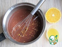 Готовьте на среднем огне, помешивая венчиком. Добавьте свежевыжатый сок и цедру апельсина. |