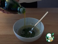 Добавить масло (у меня оливковое, но можно заменить на другое) и кипяток, все перемешать |