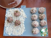 Рис откиньте на дуршлаг и распределите на доске, равномерным слоем. Каждую тефтельку прокатите по рису, чтобы полностью покрыть рисом все тефтели. Или можно сделать еще проще- рис смешайте с фаршем. |