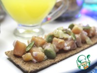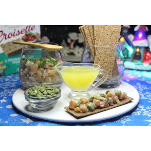 Описание: Шикарная закуска на праздничный стол! Слабосоленая рыбка, пикантные огурчики, сочность красного лука, кисло-сладкий апельсиновый соус, тыквенные семечки и все это пиршество на хрустящих хлебцах. Когда увидела эту закуску у milaisto, тут же решила сделать генеральную репетицию перед Новым Годом. Рецепт однозначно в заветную тетрадь. Пробуем?